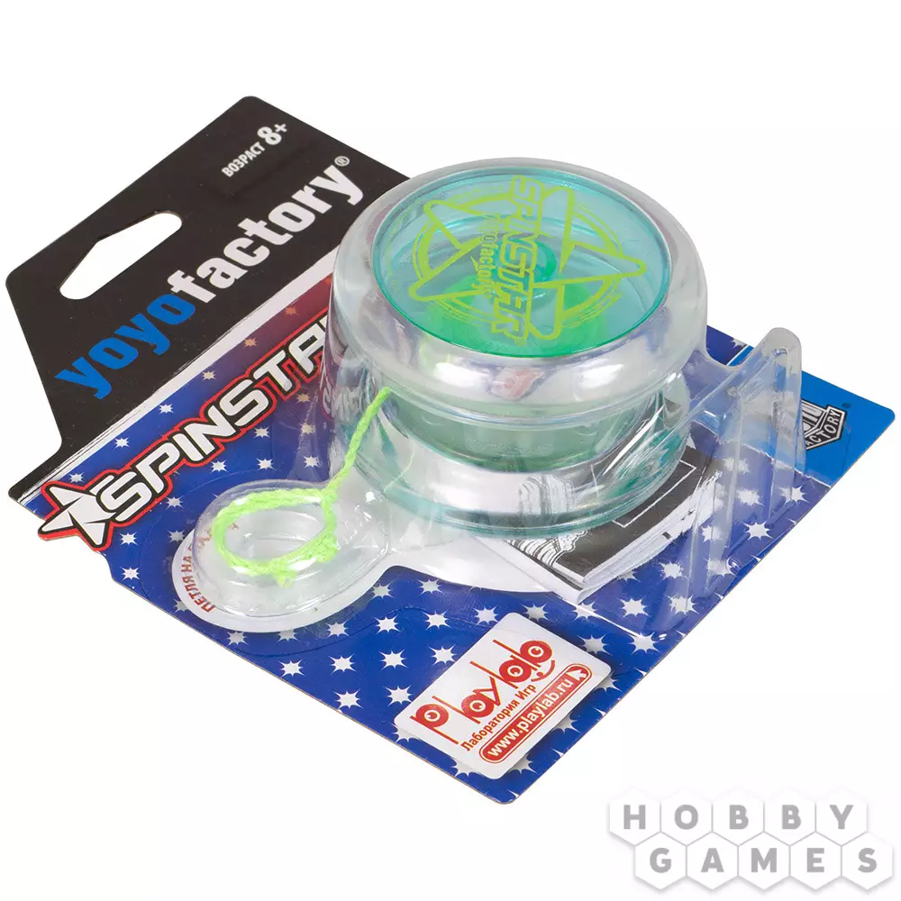 Команда YoYoFactory производит высококачественные профессиональные йо-йо для чемпионатов, и известна ими по всему миру. Корпус SpinStar создан из прочного пластика – поликарбоната, вместо стандартного подшипника в йо-йо установлена втулка со стальной сердцевиной, а тормозная система абсолютно не требует ухода. Данная модель легка в обращении и подходит для изучения различных трюков.