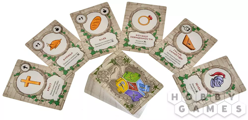 Размер карт: 63x89 мм (рекомендуются протекторы из данного раздела, 49 шт.)
