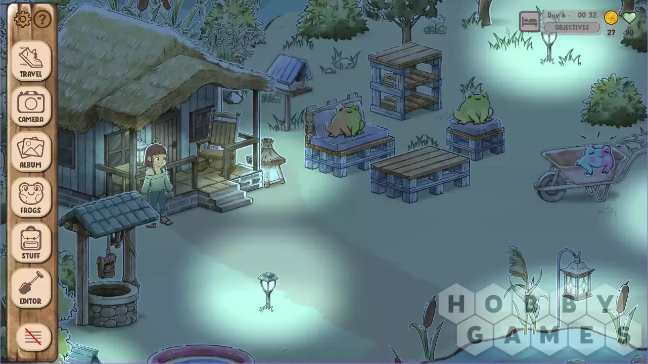 Kamaeru — это уютная игра о сборе лягушек, фермерстве и сохранении природы. Вы играете за доброго человека, помогающего старому другу восстановить водно-болотные угодья вашего детства, превратив их в безопасное убежище для дружелюбных маленьких лягушек. С помощью приветливых персонажей игры вы будете фотографировать и разводить лягушек, чтобы повысить свою репутацию, украшать свое убежище для лягушек и сажать местные культуры, чтобы помочь вашему жилищу амфибий процветать!