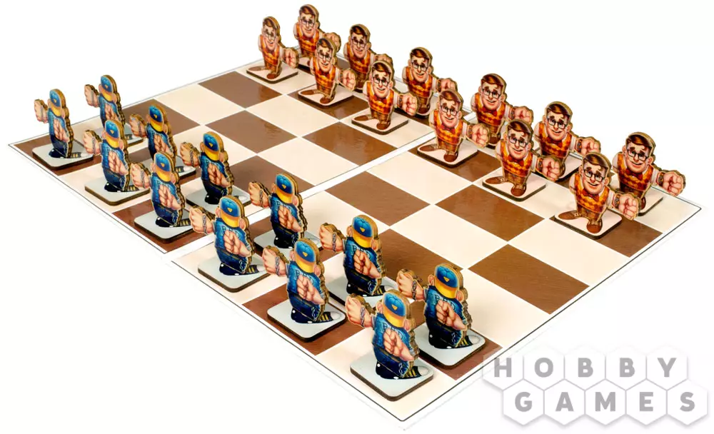 На доске выстраиваются персонажи игры: с одной стороны 12 хулиганов, а с противоположной – размещается команда ботанов. Игроки в тайне друг от друга прикрепляют к спинам персонажей своей команды игровые предметы: камень, ножницы, бумагу, динамит и флаг команды.
