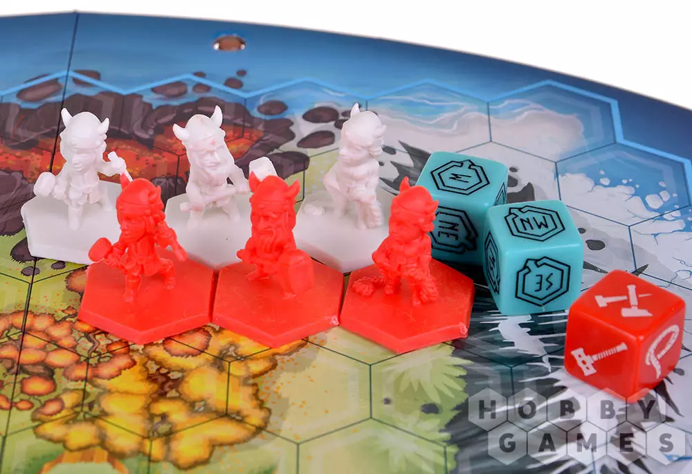 В абстрактной настольной игре "Камни Рагнарёка" игроки выступают в роли вождей своих кланов викингов, целью которых является захват как можно большей части территории Мидгарда. Для этого в их распоряжении есть по 3 викинга их клана, которые перемещаются по Мидгарду, и рунные камини, которыми они огораживают свои территории. Ход игрока состоит из двух этапов: перемещение викинга по прямой в любом направлении на любое расстояние, и выставление на поле рунного камня. Для завоевания территории, участок на игровом поле должен быть ограничен рунными камнями и (или) краем игрового поля. Если в огороженной территории есть викинг только одного клана, то есть одного игрока, то эта территория тут же становится завоёванной и принадлежит игроку, чей викинг находится внутри. Каждая клетка, входящая в завоёваанную территории, приносит игроку победные очки.