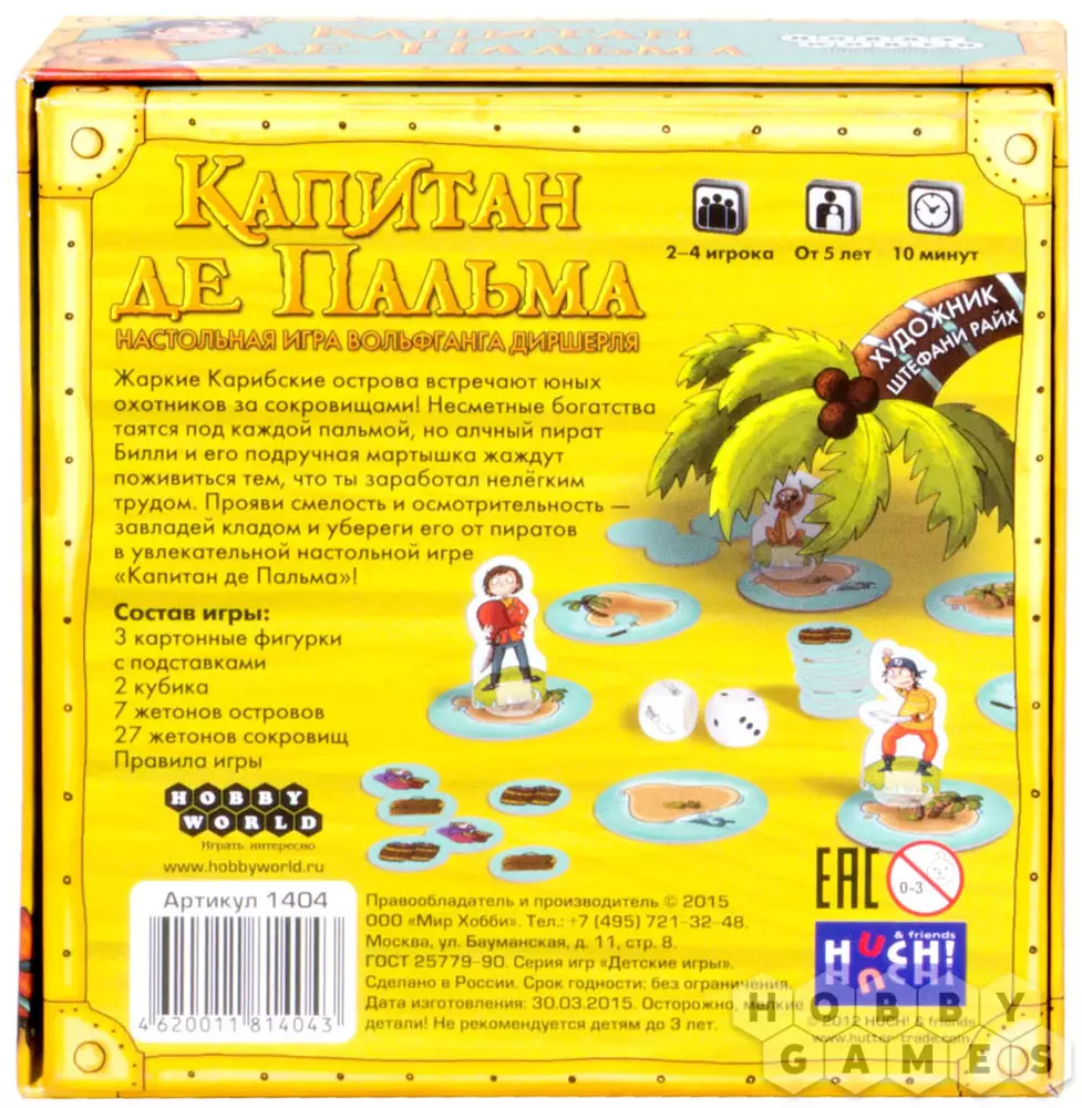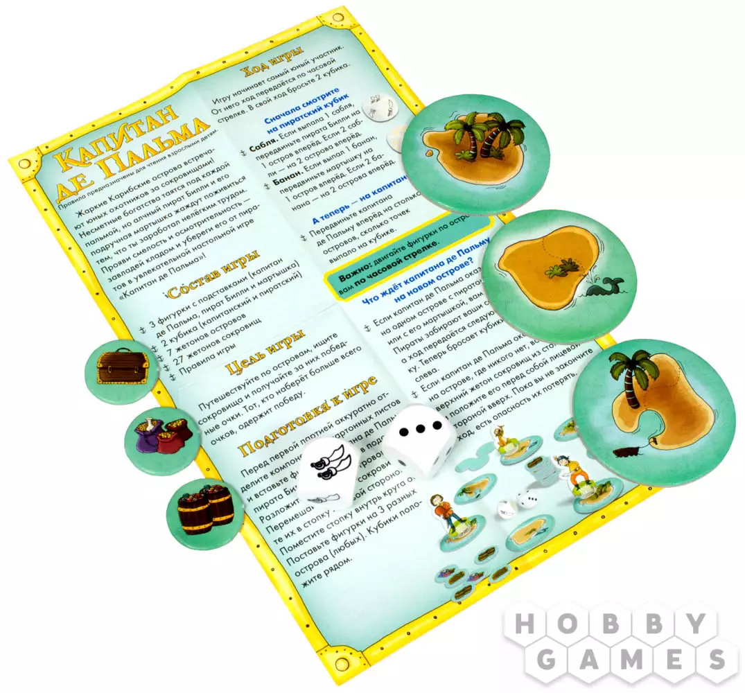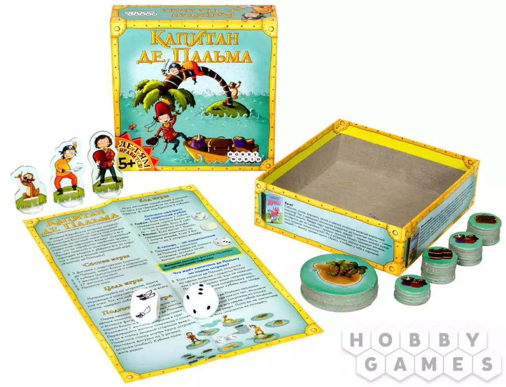 Ну что, юные приключенцы, готовы ли вы отправиться за невиданными сокровищами на далёкие острова? Тогда настольная игра "Капитан де Пальма" – это то, что вы давно искали! Отправляйтесь на жаркие Карибские острова, отыщите сокровища и уберегите их от жадного пирата Билли и его проворной ручной обезьянки. Выясните, кто сможет обхитрить пирата и унести больше сокровищ с островов!