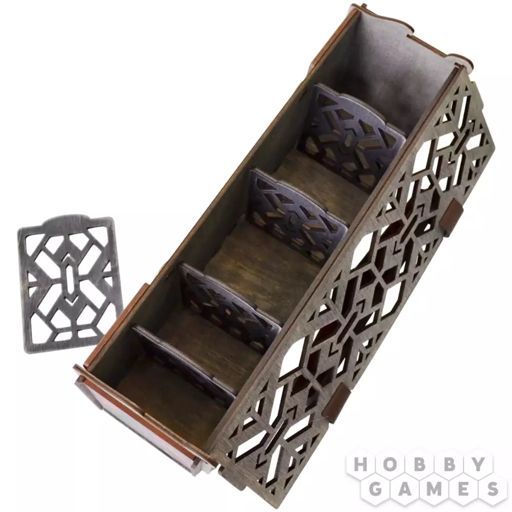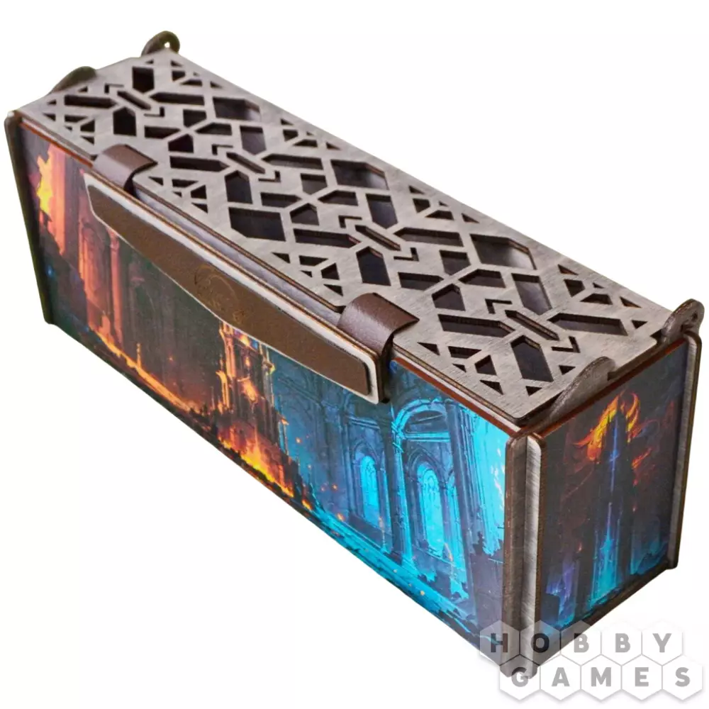 Кардбокс – незаменимый аксессуар для любителей настольных игр. Просторный и удобный, он поможет организовать карты и надолго сохранить их в идеальном состоянии. Красочный дизайн, выполненный качественными красками и зафиксированный лаком, будет радовать вас не только во время игры, но и просто стоя на полке – особенно если вы фанат фэнтези. Кардбокс выполнен из дерева, что обеспечивает ему долговечность. А ещё у него двойной механизм открытия, а значит, любителям полюбопытничать без спроса будет не так-то просто это сделать! Удобный в использовании, этот аксессуар станет отличным дополнением к вашей коллекции настольных игр.