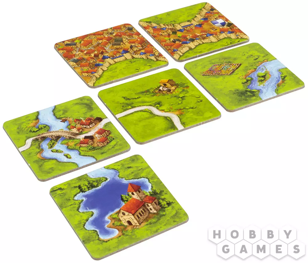 В "Каркассоне" действия игроков предельно просты. В свой ход игрок должен взять картонный квадрат с участком средневекового ландшафта и выложить его на стол к уже выложенным квадратам по принципу домино. Новый квадрат должен продолжать уже существующую картину мира – дорога смыкается с дорогой, пастбище с пастбищем, городская стена – с другим её участком. Когда благодаря размещению квадрата на столе возникает новый объект (например, дорога отходит в сторону от перекрёстка), игрок, выложивший этот квадрат, может застолбить этот объект за собой. Для этого он должен взять одну деревянную фигурку из своего резерва и поставить её на квадрат.