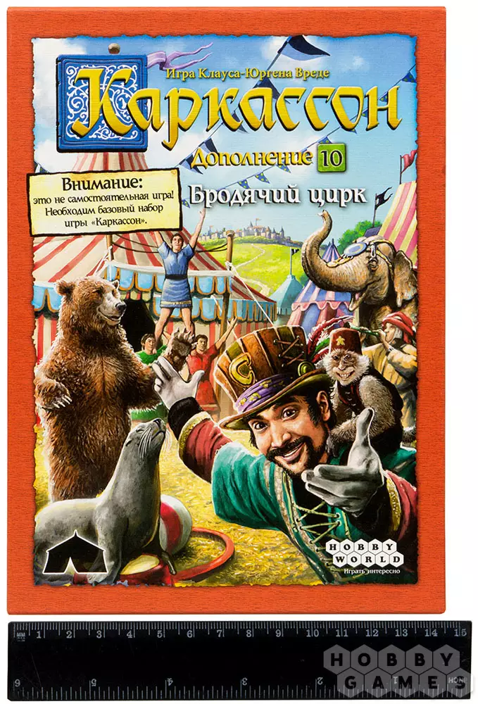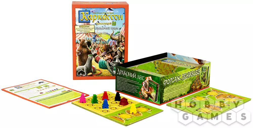 "Каркассон: Бродячий цирк" – десятое дополнение для легендарной настольной игры. Вас ожидают все необходимые компоненты для организации запоминающихся и любимых публикой цирковых представлений. Поставьте палаточный лагерь и выпускайте на арену дрессированных животных. Нанимайте мастеровитых и талантливых акробатов, способных творить невероятные чудеса в воздухе. Заручитесь поддержкой парочки толковых директоров, которые смогут эффективно руководить труппой. Это предприятие обязательно принесёт вам славу и богатство, а каждый запоминающийся цирковой номер в конце игры будет приравниваться к дополнительным победным очкам!
