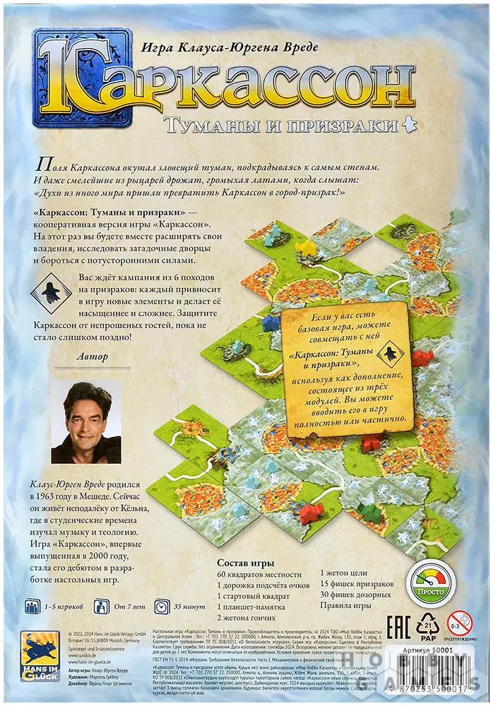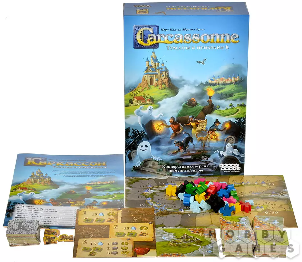Это свершилось! Представляем вам кооперативную игру из серии "Каркассон" – "Туманы и призраки"! С этого момента увеличивать свои владения вы будете не соревнуясь с другими игроками, а сообща. А ещё вам предстоит бороться с потусторонними силами и исследовать загадочные мрачные замки. Ещё "Каркассон: Туманы и призраки" примечательны тем, что вас ждёт не просто игра, а целая кампания из 6 партий! Более того, после каждой из них в игру будут добавляться новые элементы, которые сделают её сложнее и ещё насыщеннее. Постоите за родной Каркассон и вытурите с окружных земель непрошенных гостей, пока ещё не стало слишком поздно!