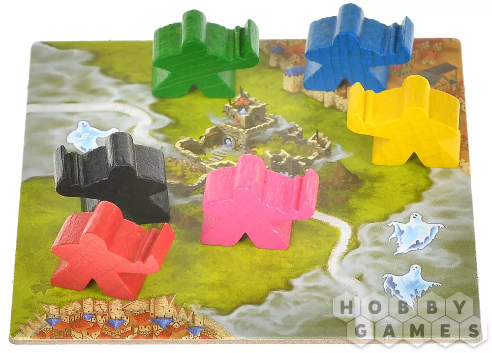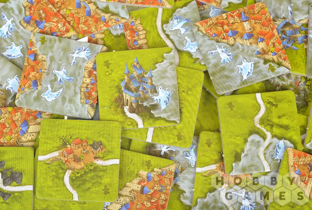 Если у вас есть базовая игра "Каркассон", можете совмещать с ней "Каркассон: Туманы и призраки", используя как дополнение, состоящее из трёх модулей. Вы можете вводить его в игру полностью или частично.