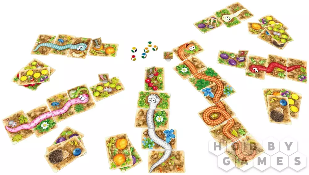 Когда все кубики расставлены, наступает время роста – полностью заполненные карты переворачиваются, превращаясь в сегменты туловища вашего червячка. Незавершённые карты ждут следующего раунда с особой фишкой на последнем фрукте. А тот, кто первым полностью накормит своего червяка и перевернёт карту с головой, получит заслуженный лавровый венок победителя!