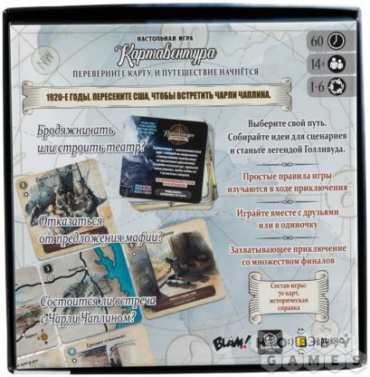 Настольная игра "Картавентура: Голливуд" предлагает вам окунуться в атмосферу эпохи и познакомиться с двумя уникальными механиками: поиском еды, необходимой для движения вперёд, и сбором сцен из культовых фильмов, вдохновивших самого Чарли Чаплина.