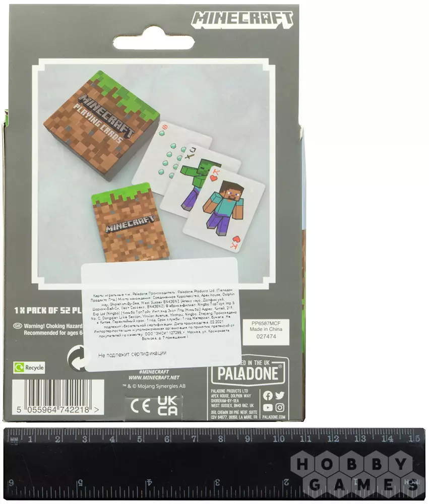 Эта колода посвящена самой популярной компьютерной игре – Minecraft. Вместо обычных мастей на картах изображены иконки с кнопок приставки: меч, лопата, алмаз и сердце.