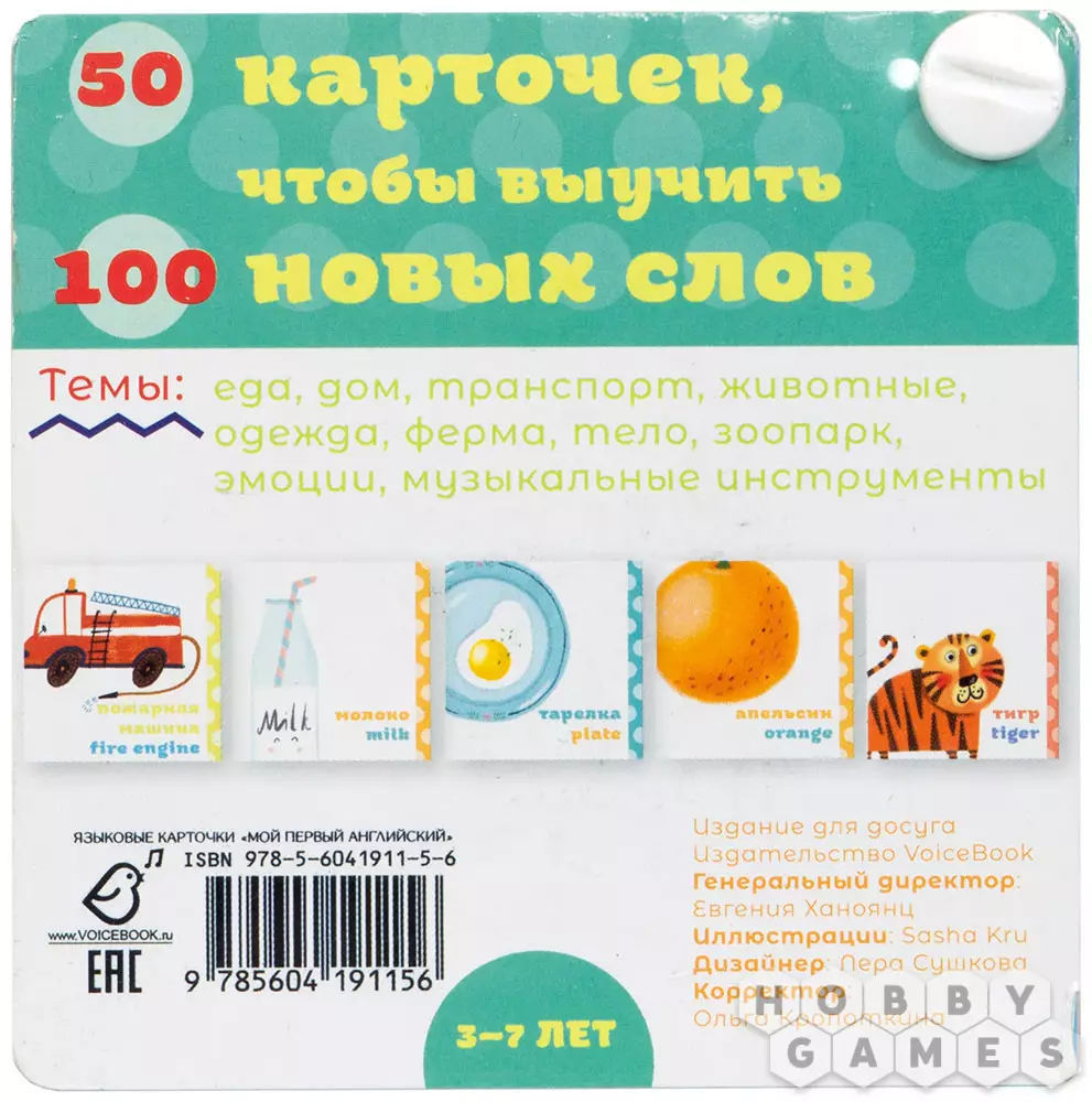 "Мой первый английский" – это 50 карточек с сотней простых иностранных слов для вашего ребёнка, собранные в небольшой удобный веер. Его можно взять с собой, например, в дорогу, чтобы проводить время с пользой, а можно изучать слова дома. Благодаря компактному размеру карточек, веер не займёт много места ни в сумке, ни на полке.