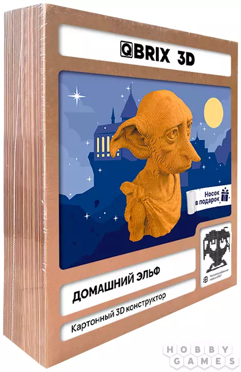 3D-конструктор "Домашний эльф" от компании QBRIX – это конструктор, созданный из экологических материалов. Всё, что вам будет нужно для его сборки, уже входит в комплект. Детали заранее вырезаны и рассортированы, что значительно упрощает сборку. Вам осталось всего лишь вынуть детали из картона. Готовый пазл также можно разукрасить, чтобы придать ему ещё большую уникальность.