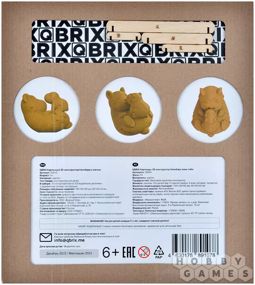 3D-конструктор "Капибара и малыш" от компании QBRIX – это конструктор, созданный из экологических материалов. Всё, что вам будет нужно для его сборки, уже входит в комплект. Детали заранее вырезаны и рассортированы, что значительно упрощает сборку. Вам осталось всего лишь вынуть детали из картона. Готовый пазл также можно разукрасить, чтобы придать ему ещё большую уникальность.