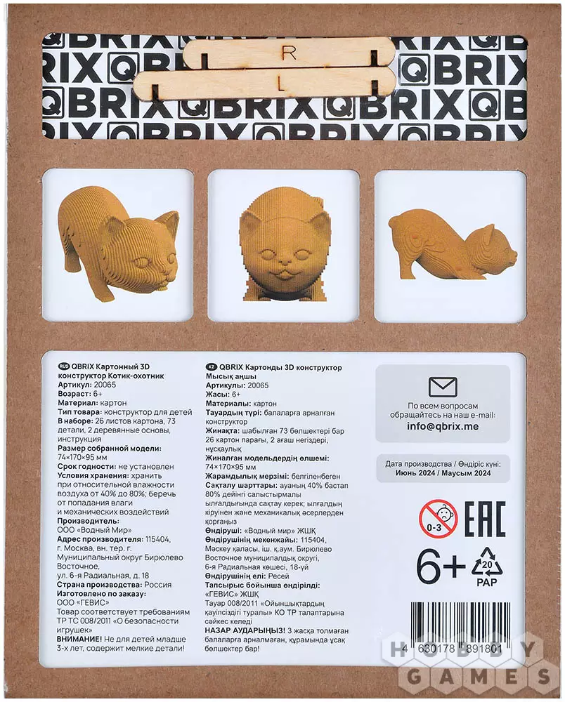 3D-пазл "Котик-охотник" от компании QBRIX – это конструктор, созданный из экологических материалов. Всё, что вам будет нужно для его сборки, уже входит в комплект. Детали конструктора заранее вырезаны и рассортированы, что значительно упрощает сборку. Вам осталось всего лишь вынуть детали из картона. Готовый пазл также можно разукрасить, чтобы придать ему ещё большую уникальность. Также пазл можно использовать в качестве органайзера и хранить в нём ручки, карандаши, ножницы и другое.