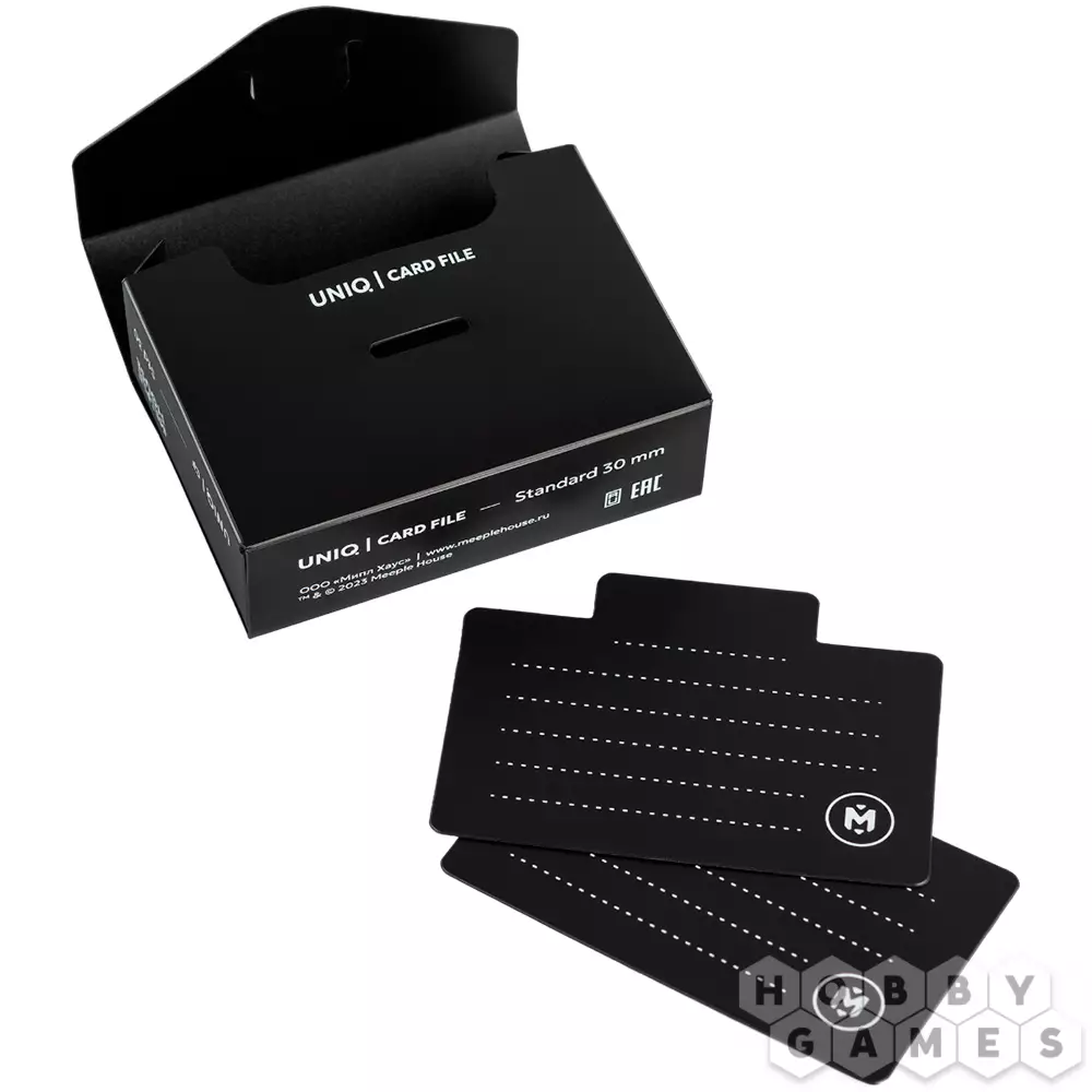 Удобная картотека от компании Meeple House серии Standart справится с непростой задачей – хранение и распределение карт. Благодаря разделителям вы сможете распределить карты так, как вам удобно. Это значительно ускорит процесс подготовки к игре и даже процесс самой игры, делая его приятнее. Органайзер выполнен из пластика и подходит для карт: UCS Quartz (64х89 мм), Std USA (56x87 мм), Chimera (57.5x89), Euro Size (59х92 мм) и Std Card Size (63.5x88 мм).