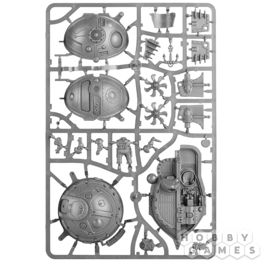 Быстрые и маневренные Грундсток-канонерки, управляемые всего лишь двумя дуардинами-харадронцами – это суда охранения для более крупных кораблей небесной флотилии. Они предназначены для того, чтобы быстро вступать в бой с прямыми угрозами фрегатам и дредноутам, уничтожать и дезориентировать их. По сути, канонерка представляет собой лафет с пушкой, укрепленный на парящем шаре – общество харадронов ценит практичность, и Грундсток-канонерка - одно из воплощений этой практичности.