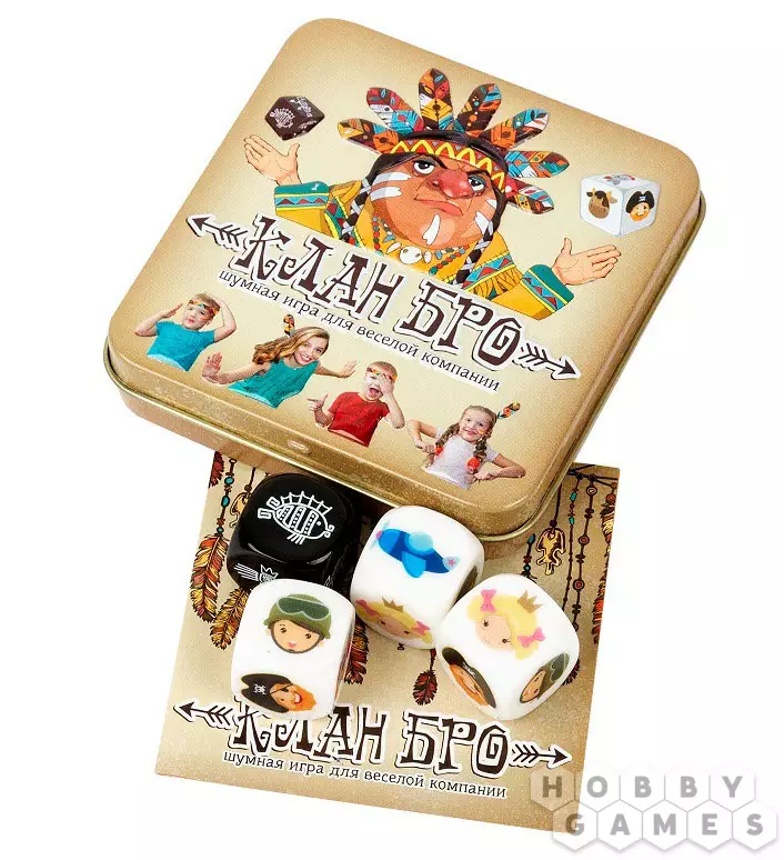 Сможете изобразить пирата только движениями? А солдата только звуками? "Клан Бро" – это настольная игра, которая развивает воображение! Задача каждого игрока проста донельзя: бросьте кубики с персонажами и способами их изображения, и следуйте выпавшему результату. Это весёлая игра, которая обязательно понравится детям! Да, и не забудьте назначить вождя, ведь кто-то же должен следить за правилами!