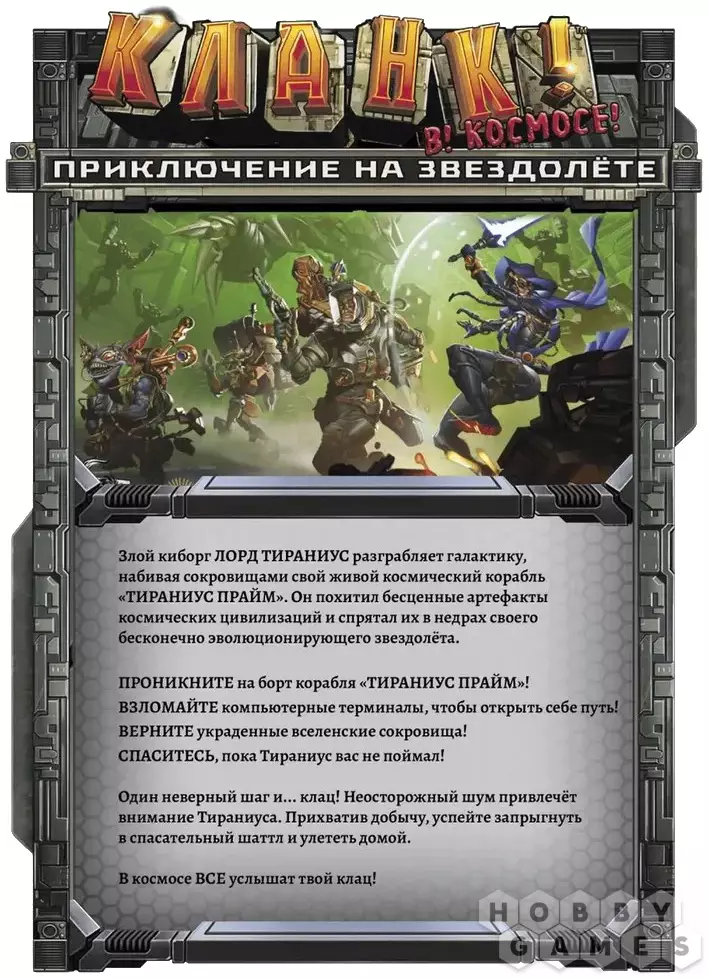 Перед вами игра с механикой построения собственной колоды. Вы примерите на себя роли отважных грабителей, нацелившихся на крупную добычу – сокровища лорда Тираниуса. Приготовьтесь заключать союзы и прикарманивать артефакты – иначе говоря, собирать собственную, уникальную колоду, грамотное использование которой принесёт вам победу. Но будьте осторожны: хоть вам и удалось проникнуть на корабль незамеченными, внутренняя система безопасности весьма хороша, поэтому один неосторожный шаг – и враг вас услышит. Останется только молиться, что вы успеете добежать до спасательного шаттла быстрее, чем до вас дотянутся чужие руки, – а ещё лучше, чтобы ваших соперников заметили первыми, устранив таким образом преграду на вашем пути...