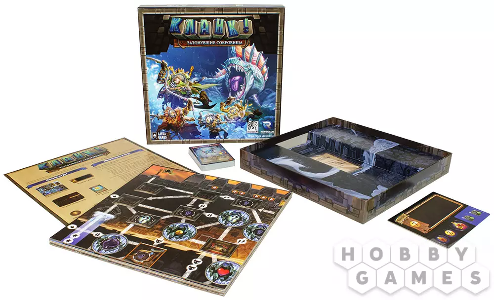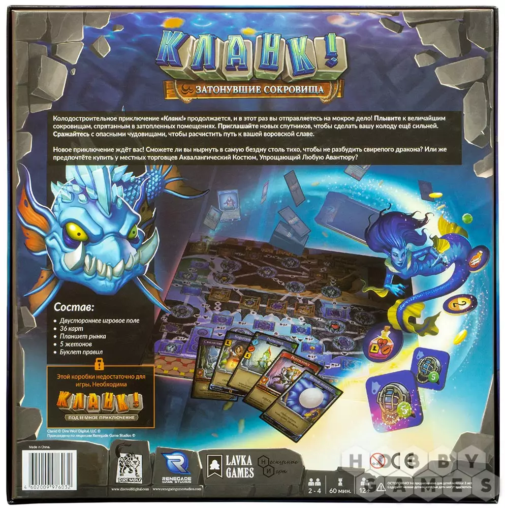 В дополнении "Затонувшее сокровище" к игре "Кланк! Подземное приключение" вас ждёт сражение с гораздо более опасным существом, чем дракон – местные богатства охраняет золотая рыбка и её орава монстров! И в затопленных помещениях они двигаются гораздо быстрее, чем вор с мешком сокровищ!