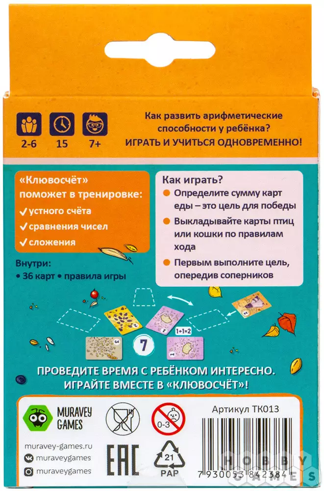 "Клювосчёт" – оригинальная настольная игра для детей, идеально подходящая для того, чтобы развивать арифметические способности, начиная с самых первых школьных лет. Играть и учиться теперь можно одновременно, и это невероятно увлекательно. Взгляните сами!