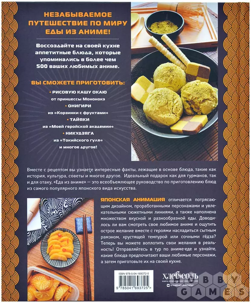 Японская мультипликация славится своим великолепным дизайном, тщательно прописанными героями и интригующими сюжетами, а также изобилует изображениями аппетитных и разнообразных блюд. Когда вы наслаждаетесь просмотром любимого тайтла, не хотелось ли вам когда-либо попробовать гёдза или темпуру за компанию с главными героями? Благодаря книге "Еда из аниме" вы сможете претворить это в жизнь!