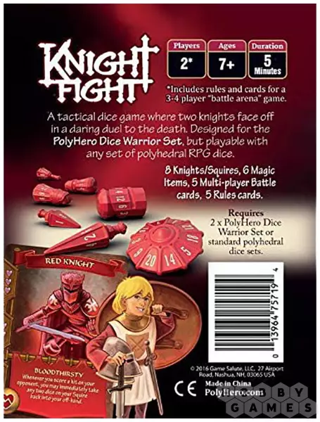 Knight Fight – захватывающая тактическая игра в кости, в которой два рыцаря ведут яростный бой на жизнь и смерть. Игра создана специально для кубиков PolyHero Warrior 8 Dice Set, но подойдёт и любой набор многогранных кубиков для настольных ролевых игр.