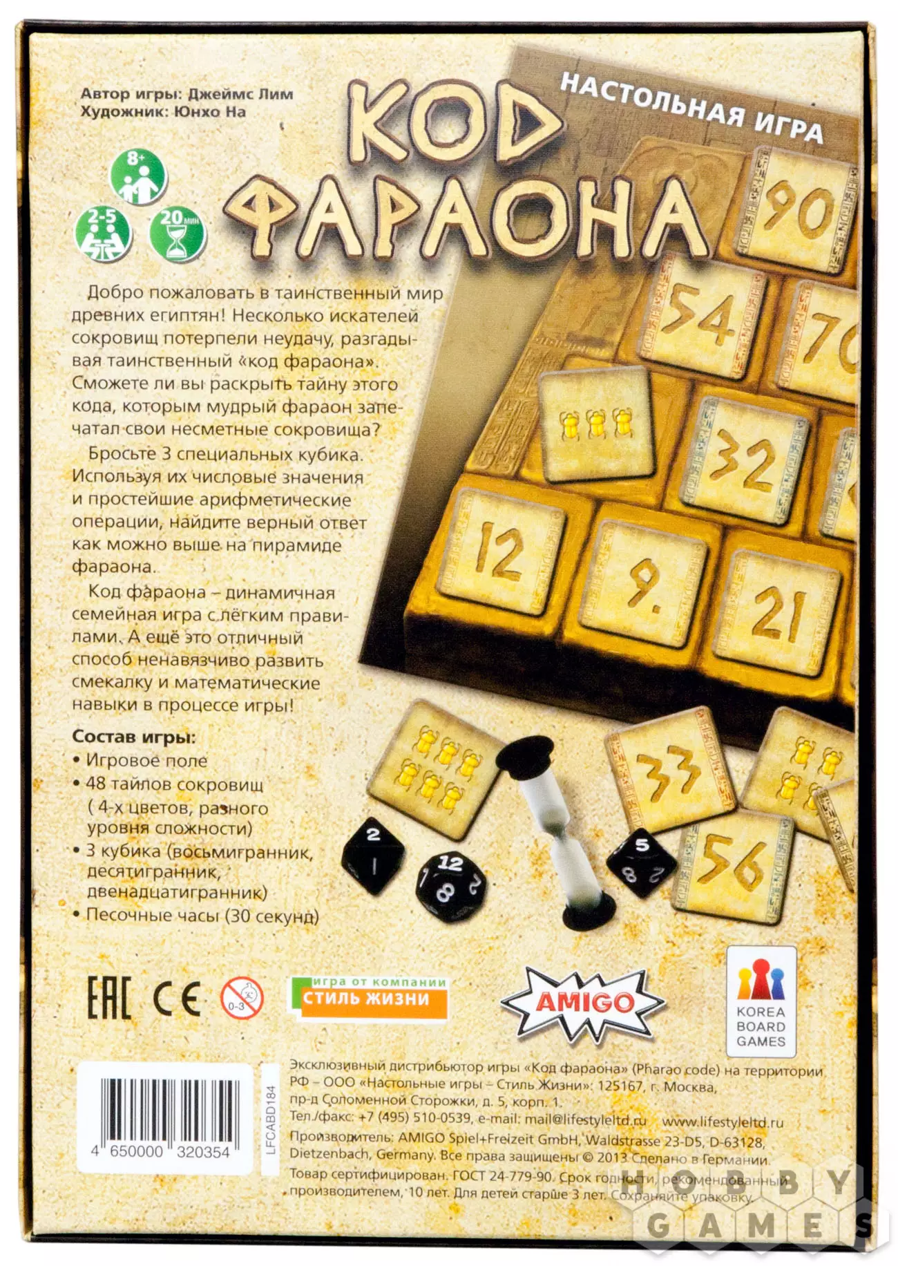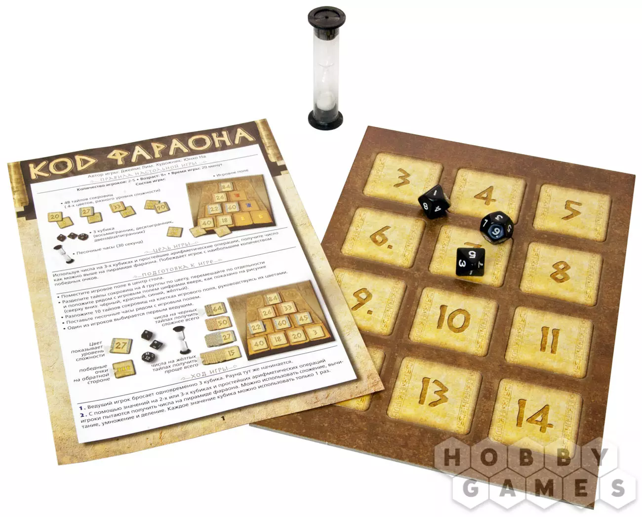 Настольная игра «Код фараона» - это настоящая математическая головоломка для археологов-авантюристов! Вдвоем или даже впятером можно попытаться разгадать Код Фараона и добыть сокровища древних. Понадобится лишь сообразительность и достойные навыки устного счета!