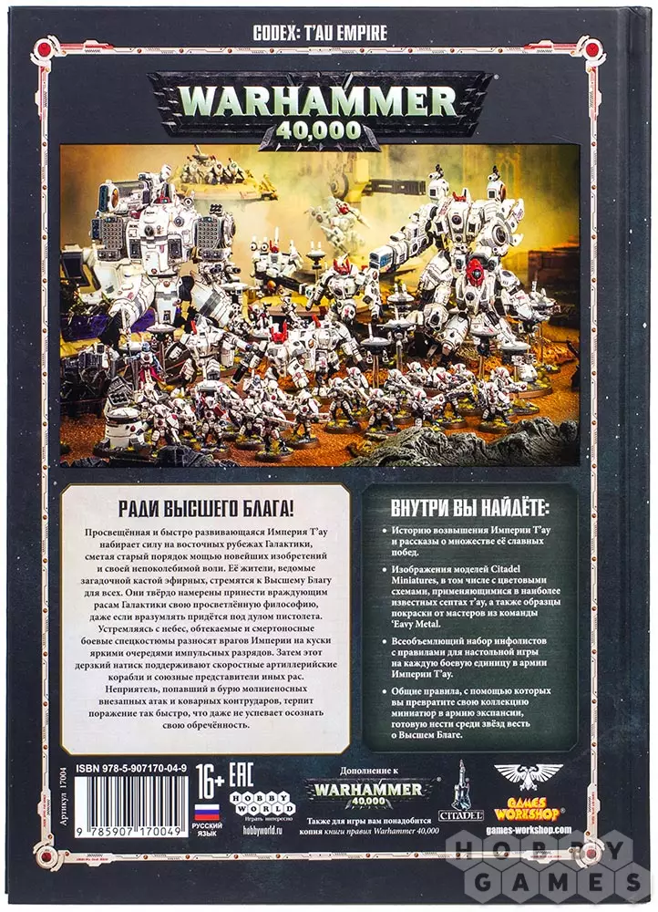 В книге Кодекс: Империя Т'ау содержится свод правил и бэкграунд армии Империи Т'ау: