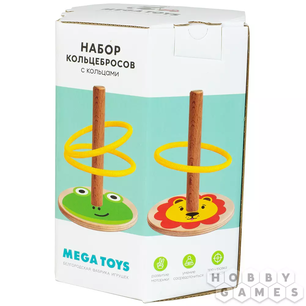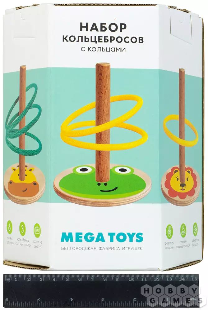Стойки кольцебросов сделаны из высококачественной древесины, и прошли многоэтапную обработку, что делает их максимально безопасными: поверхности гладкие и не имеют заусенцев или зазубрин. Оригинальные принты нанесены посредством прямой печати по дереву, что позволяет изображению быть более насыщенным и долговечным по сравнению с обычной наклейкой. Кольца для игры выполнены из текстильного шнура, благодаря чему они комфортно лежат в руке и достаточно мягкие, чтобы ими было невозможно повредить что-либо во время игры в доме.