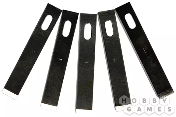 Набор сменных плоских лезвий от AK Interactive предназначен для стандартных ножей и рукояток с отверстием 6 мм. Плоская форма делает эти лезвия идеальными для резки, вырезания, скобления, зачистки и других операций, где необходима точная и аккуратная работа. Благодаря тому, что режущая кромка располагается параллельно поверхности, практически полностью исключая выпуклую часть, лезвия особенно удобны для выполнения градиентных срезов.