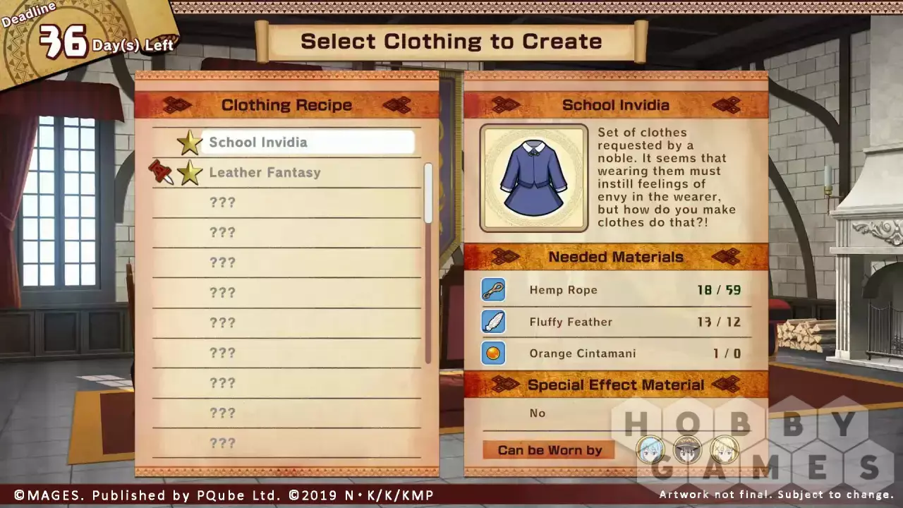 Collect resources to create outfits by completing tasks and quests. Manage your finances carefully to afford the materials you are missing, and prioritise gathering the outfit-specific ingredients you will need.