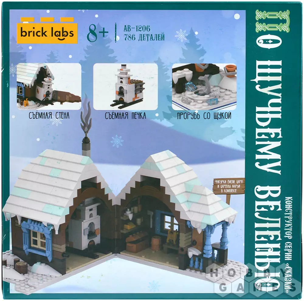 Добро пожаловать в мир русских сказок с набором "По щучьему веленью" от Brick Labs. Каждая деталь этой конструкции наполнена славянским духом: русская изба из дерева со скатной крышей и настоящей печной трубой, окна украшены резными наличниками и, конечно, радует глаз аккуратное крылечко. А что творится внутри! В центре, конечно, красуется русская печка, на которой так полюбил лежать Емеля. По всему домику таится разная утварь и создаёт интерьер настоящей деревенской избы: ухват для чугунка, сундук с вещами, который передается из поколения в поколение.