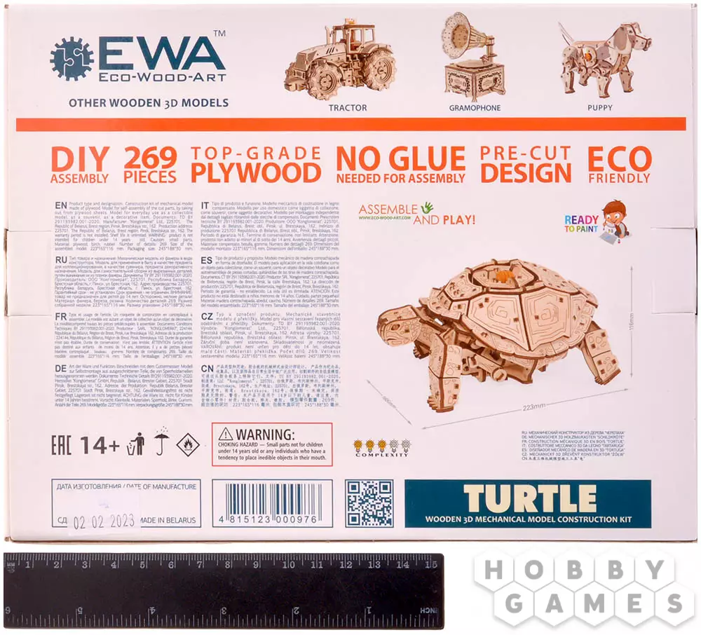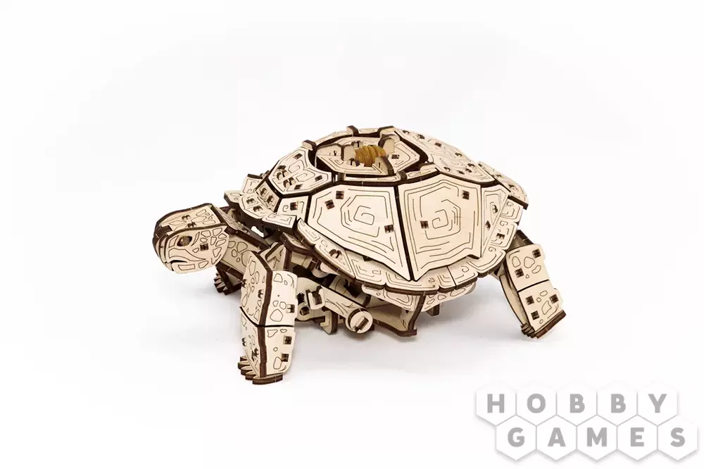 Модель из экологически чистых материалов, предназначенная для самостоятельной сборки и имеющая механизм, приводящий в движение. У механизма есть ручная заводка и возможность запускать и останавливать Черепаху. Конструкция деревянной модели позволяет ей двигаться максимально реалистично: во время движения Черепаха мило перебирает ножками, чем вызывает бурю положительных эмоций у детей и взрослых. Это идеальная игрушка, замечательный подарок и достойный предмет коллекционирования для дома и офиса.