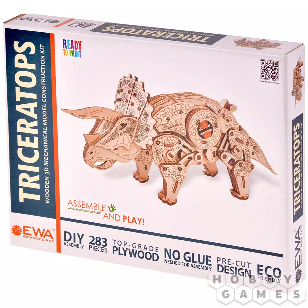 Ходячий "Динозавр Трицератопс" от EWA (Eco-Wood-Art) – сборная механическая модель растительноядного динозавра, существовавшего более 65 миллионов лет назад. Трицератопс – самый известный из семейства крупных рогатых динозавров. Соберите и выгуливайте своего собственного динозавра!