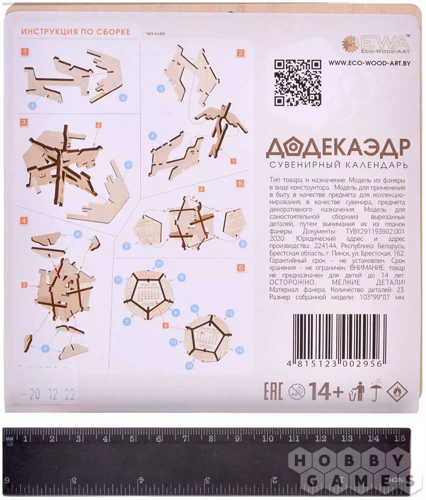В наборе 23 детали, изготовлены из берёзовой фанеры 4 мм, сборка без клея.