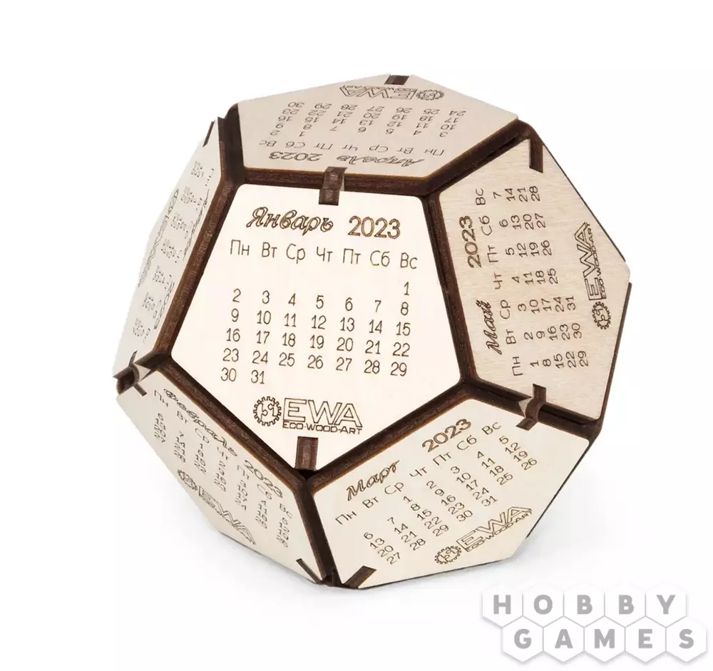 Деревянный календарь "Додекаэдр". Сама форма додекаэдр кажется, что была придумана для размещения календаря с месяцами и датами, 12 граней и 12 месяцев.