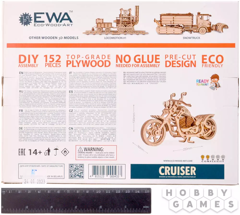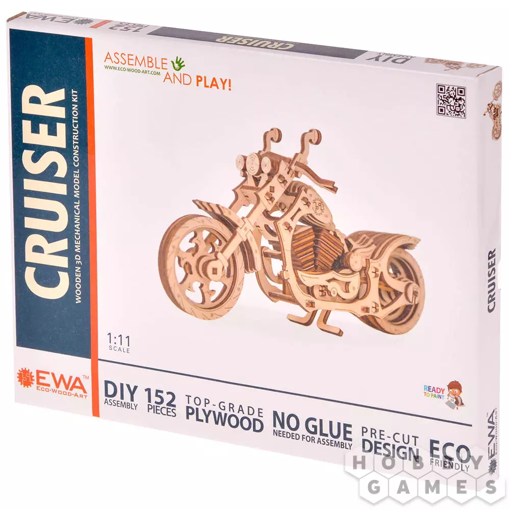 Сборная модель EWA Cruiser – конструктор, сборная механическая модель мотоцикла с простым и надёжным механизмом заводки – отведи и отпусти!