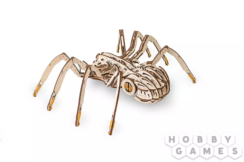 Паук – сборная механическая модель паука с простым механизмом ручной заводки. Эффектный дизайн, натуральные материалы, высокая схожесть с арахнидами, грациозность и стремительность в движении дают возможность испытать незабываемые ощущения от использования модели. Паук может стать отличным подарком или заметным элементом декора, предметом коллекционирования или поводом пошутить с друзьями!