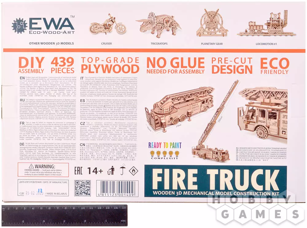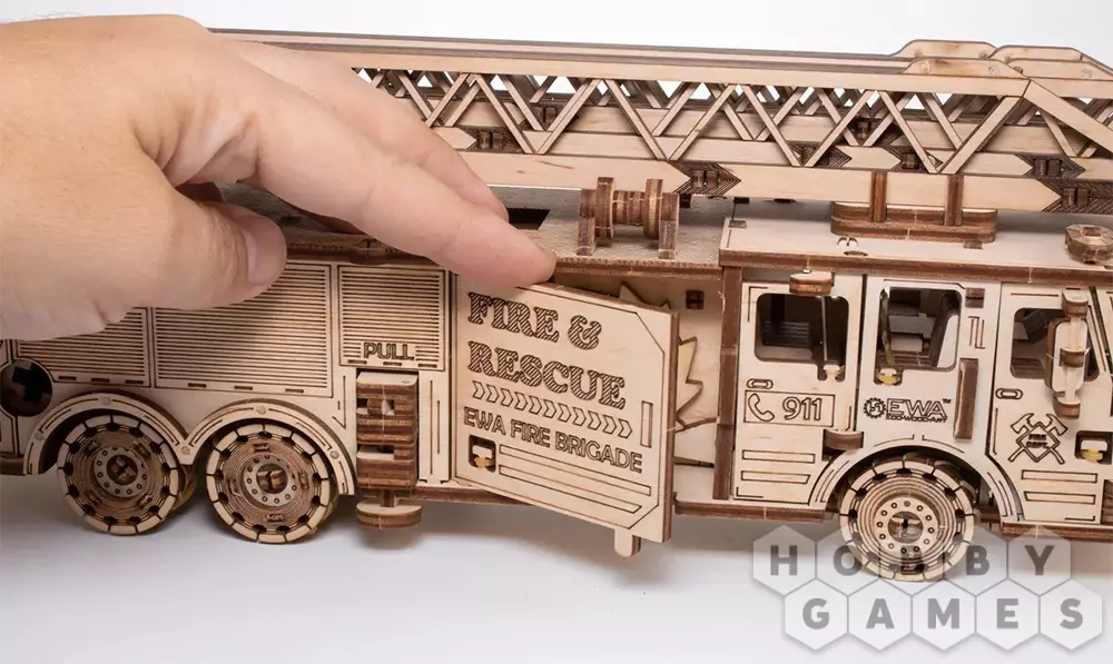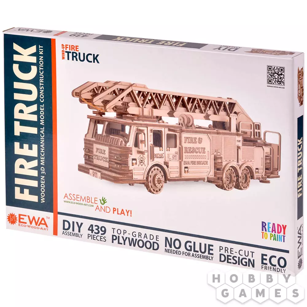 Механическая деревянная сборная модель Пожарной Машины Eco Wood Art.