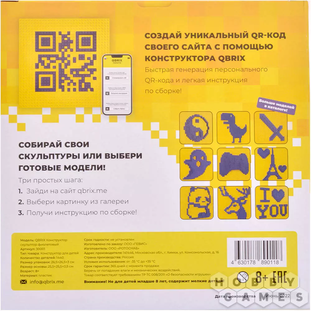 С данным набором вы сможете собрать собственный пиксель-арт из многочисленных компонентов! Выберите из онлайн-каталога модель, получите инструкцию по сборке и приступайте! Также вы можете собрать уникальный и рабочий QR-код с помощью конструктора QBRIX.