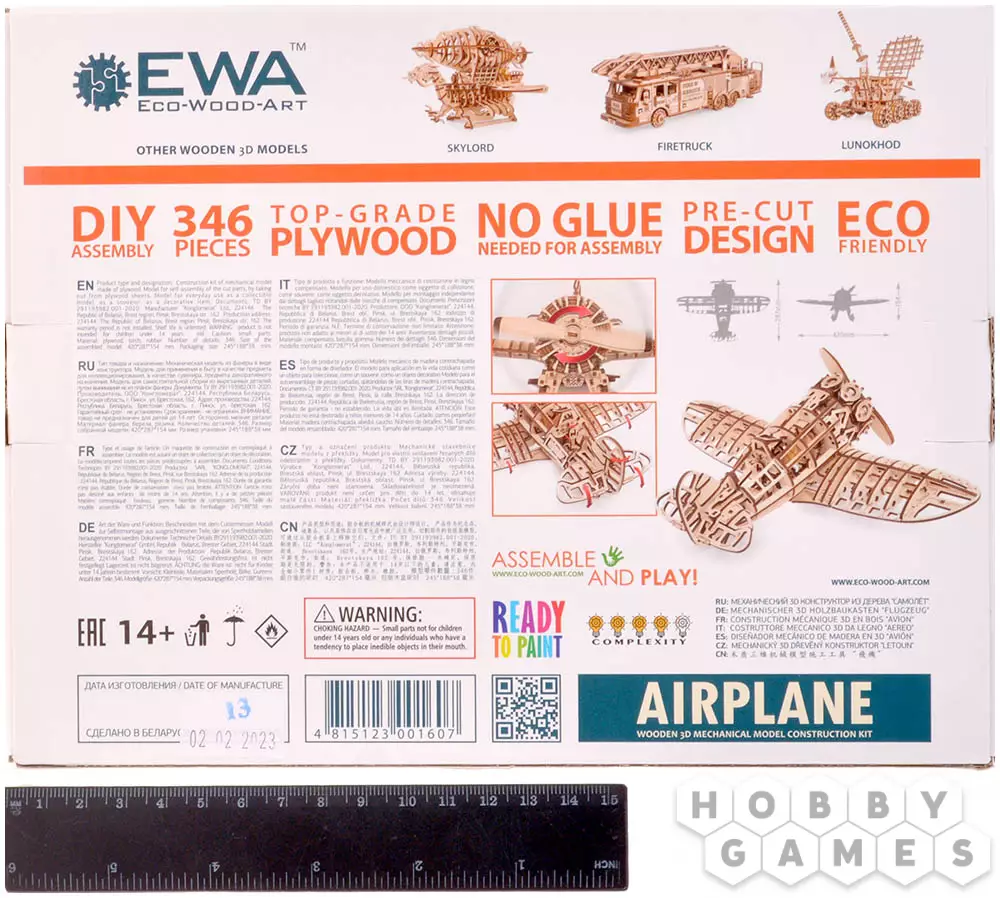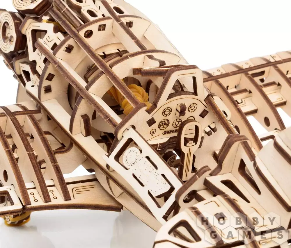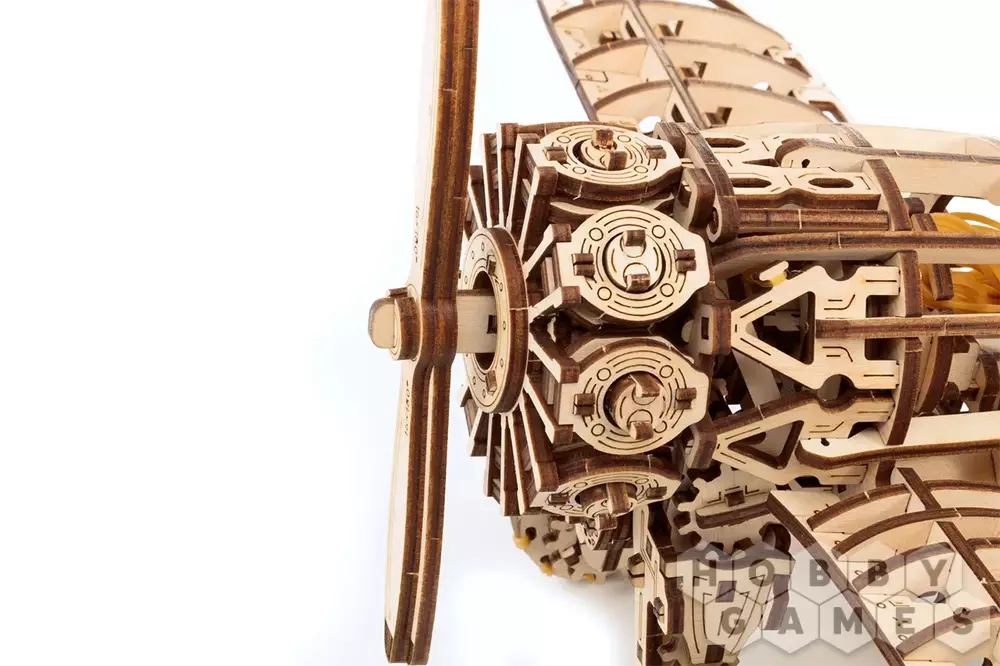 Сборная модель "Самолёт с мотором" Eco Wood Art – механический деревянный конструктор с 3D двигателем на резинке. Прекрасная сборная модель, обладает уникальным дизайном, которая понравится всем любителям авиации. Деревянная модель собирается без помощи клея, с ней справится и ребенок. Такой конструктор можно смело дарить вашим друзьям, коллегам и родным.