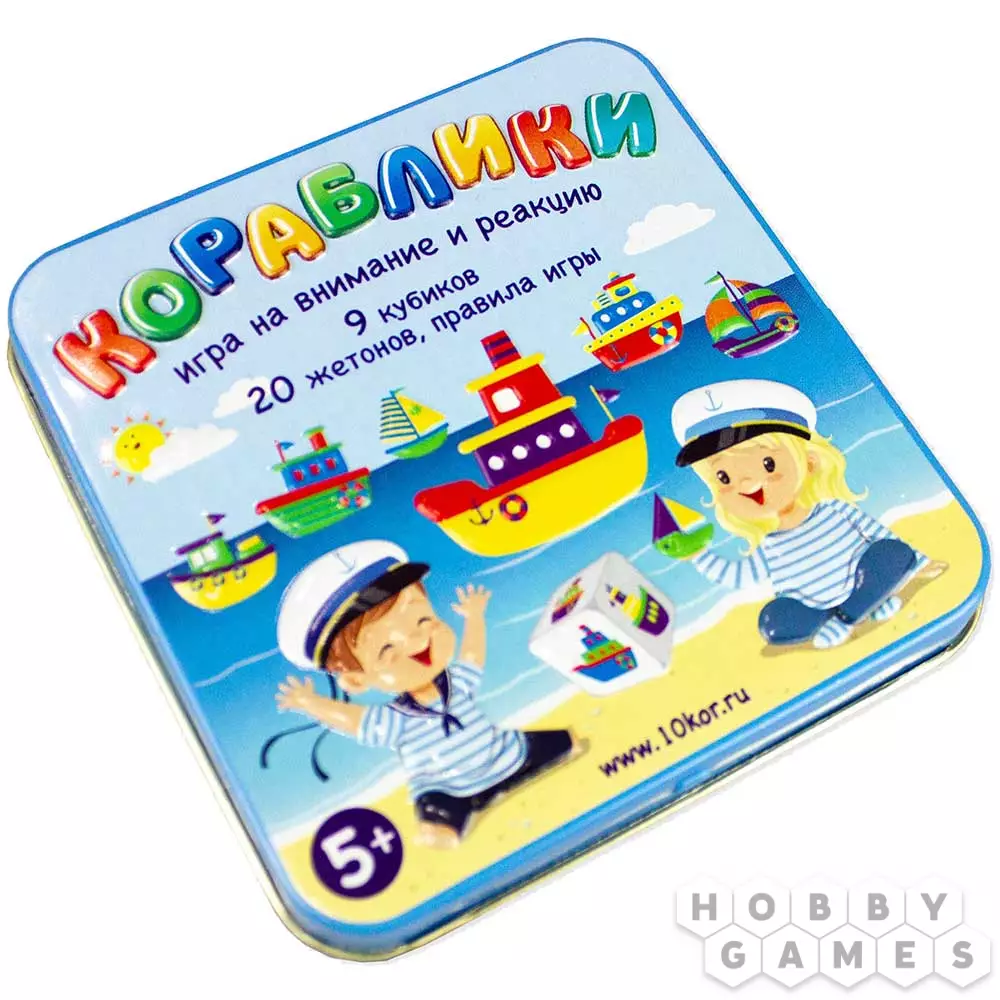 В настольной игре "Кораблики" ваш ребёнок не просто станет капитаном корабля, а соберёт целый флот! Правила игры очень простые: вначале все участники кидают кубик с изображением штурвалов, так определяется цвет кораблей, которые они будут собирать. Затем кто-то один бросает остальные кубики, на которых изображены корабли. После этого капитаны отбирают себе кораблики того же цвета, что и штурвал, который им выпал вначале. Игрок с самым большим числом кораблей получает один победный жетон. Победу одержит тот, кто собрал больше всего победных жетонов.