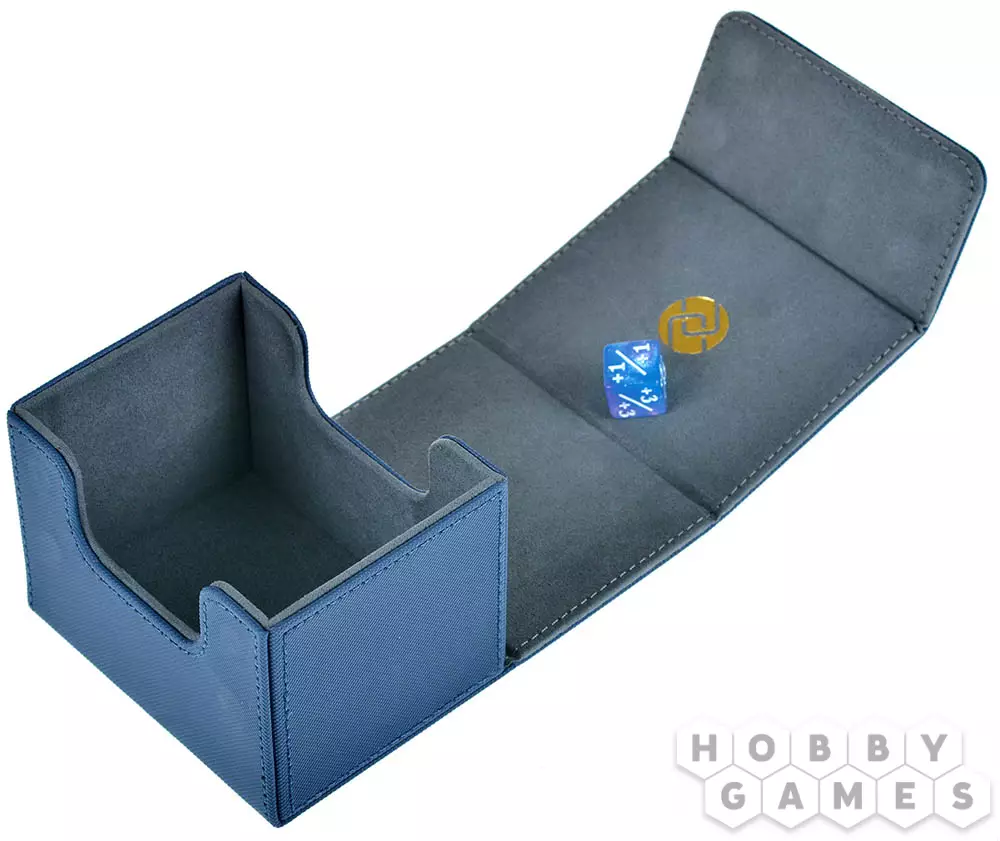 Card-Pro – это идеальный аксессуар для хранения колоды карт до 100 штук в двойных протекторах. Внутри коробочка обита бархатом, что гарантирует карточкам безупречное хранение. Коробка прочно закрывается с помощью магнитного замка. Колоды карточек можно легко достать, потому что крышка коробки открывается, раскрывая выемки с обеих сторон. В комплекте также идёт специальный кубик – счётчик выносливости.