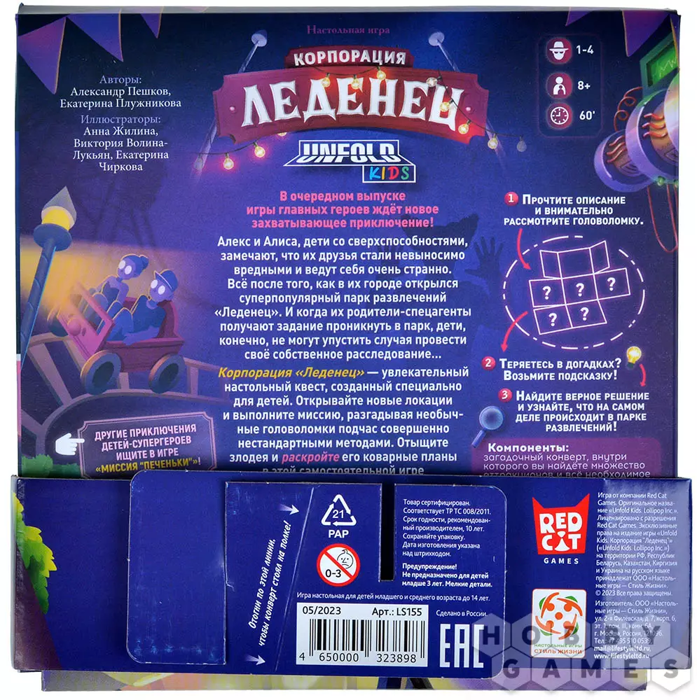 Приготовьтесь к увлекательному приключению вместе с Алексом и Алисой, детьми с необычными способностями. Эти шустрики не упустят шанс расследовать все тайны своими силами. Корпорация “Леденец” – вторая детективная настолка из серии “Детский квест”. В городке ребят появился таинственный парк аттракционов под милым названием "Леденец", после чего их друзья начали себя вести ну очень необычно. Руки так и чешутся разгадать эту загадку!