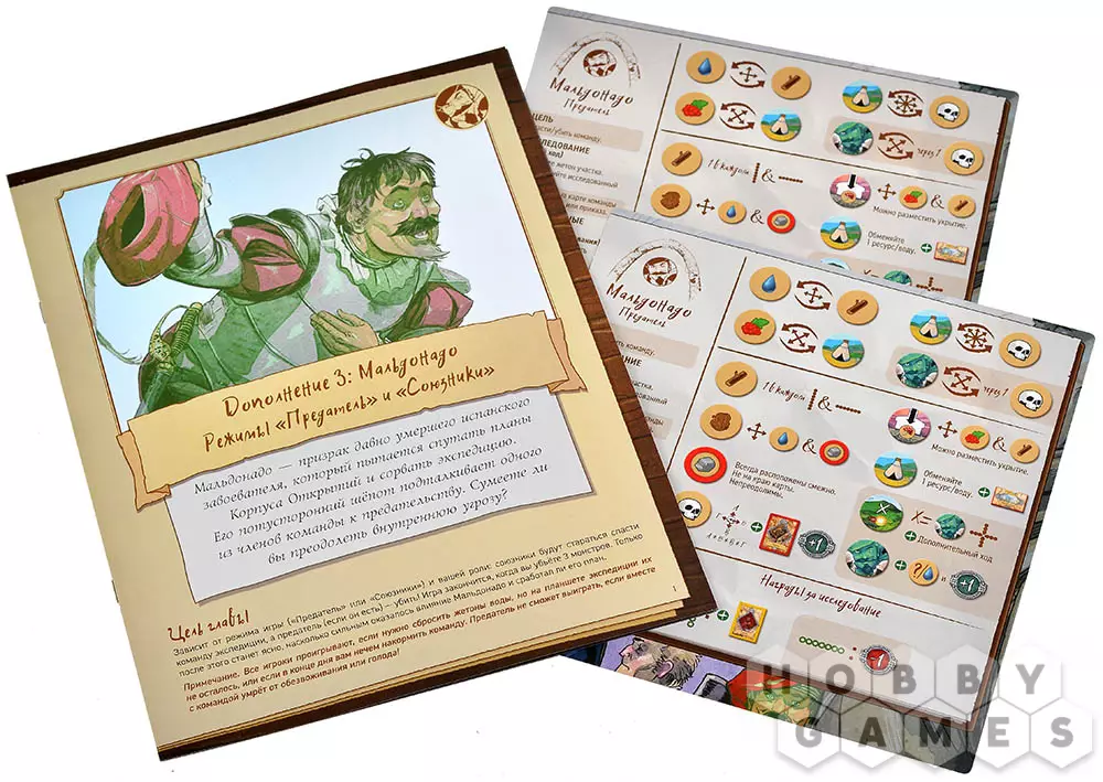 Дух давно почившего испанского конкистадора Мальдонадо не даёт покоя экспедиции. Его леденящий шёпот всё настойчивее звучит в головах путешественников, подталкивая кого-то из отряда к предательству. Чтобы уберечь товарищей, вам предстоит снова и снова проходить опасные испытания, выкладывать особые карты и не спускать глаз с напарников. Один из них точно жаждет не спасения, а гибели всей команды. Вот только действовать он будет с предельной осторожностью.