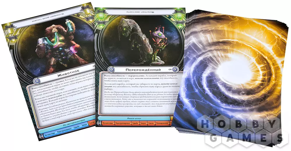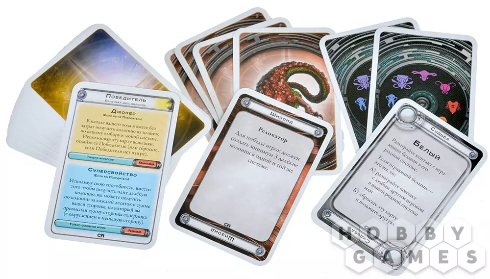 Затем из карт замешиваются колода судьбы и космическая колода. Посреди стола располагается Варп со шкалой для счётчиков далёких колоний. Теперь всё готово для начала первого хода: эта честь может быть отдана, например, самому молодому из участвующих игроков. Совершающий ход игрок именуется Агрессором.