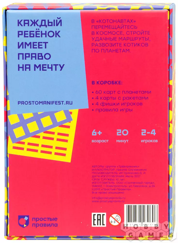 Котонавты, они как космонавты, только котики! Они раскиданы по планетам, а вам предстоит погрузить их всех на ракеты и отправить по домам. В этой занимательной настольной игре вы будете летать по настольному космосу, строить уникальные маршруты и возить котонавтов на планеты соответствующего им цвета. Победит тот, кто перевезёт на родные планеты как можно больше космических скитальцев, и, таким образом, наберёт максимальное количество победных очков.