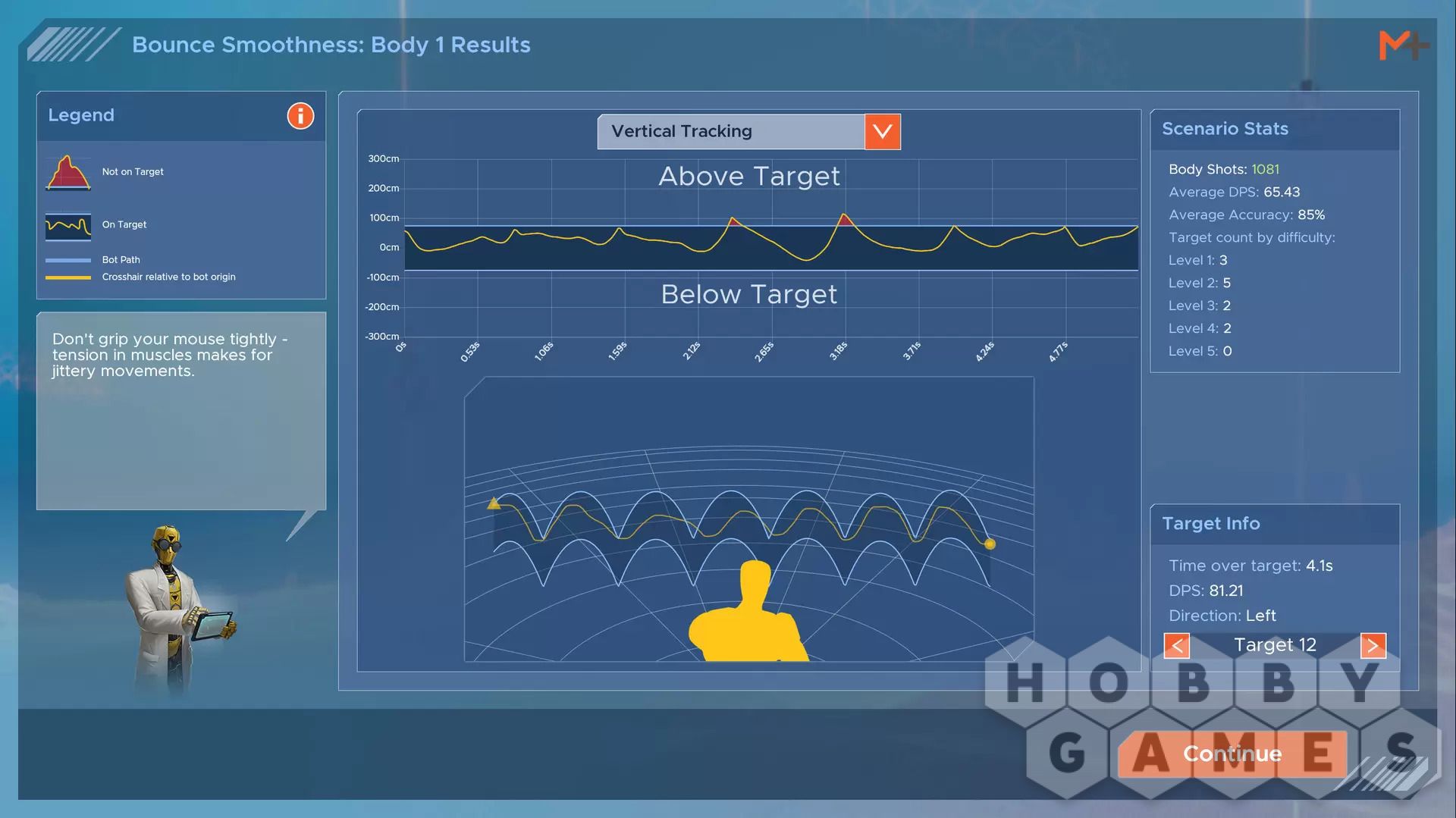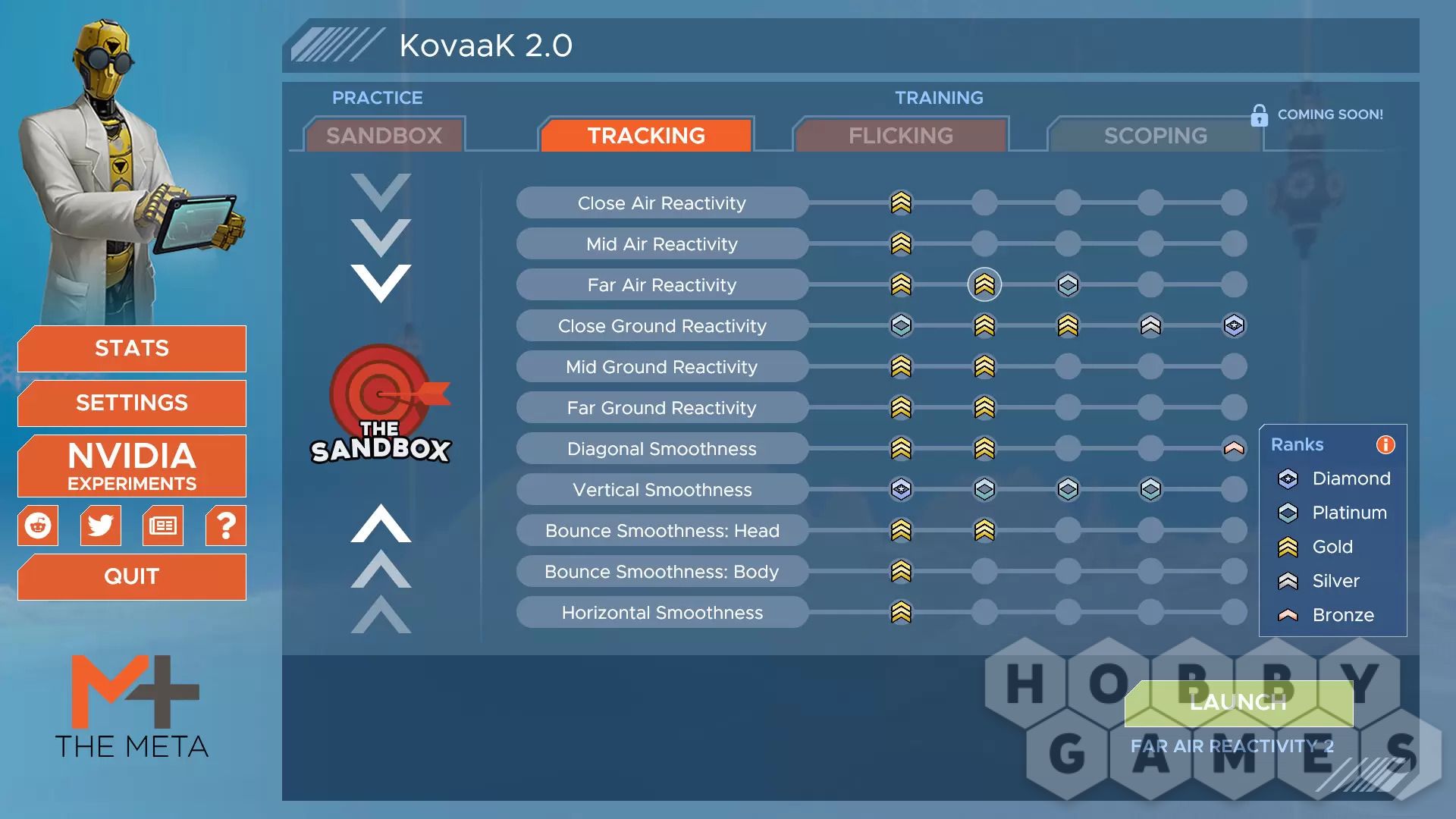 Great tracking is all about smoothness and this trainer will help you get results faster. There are eleven core skills to perfect, each featuring five difficulty levels—you’ll always have something to focus on. Bots are wired with dynamic difficulty and get harder as you perform better. A new ranking system shows your progress toward each level. New charts show your progress and how smooth you really are.