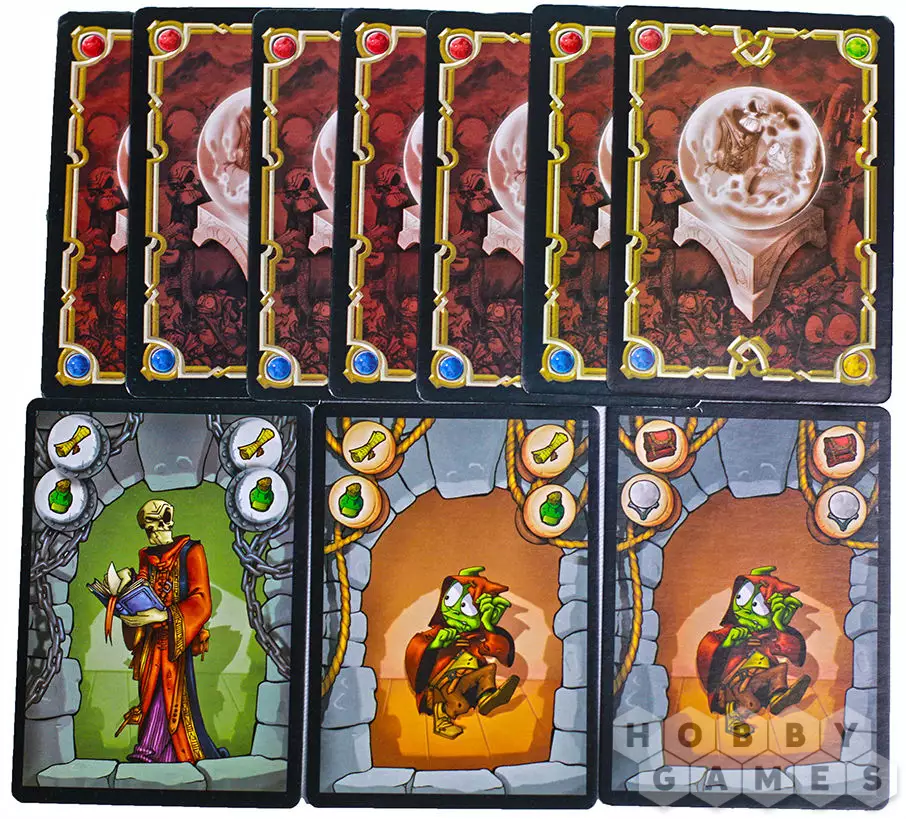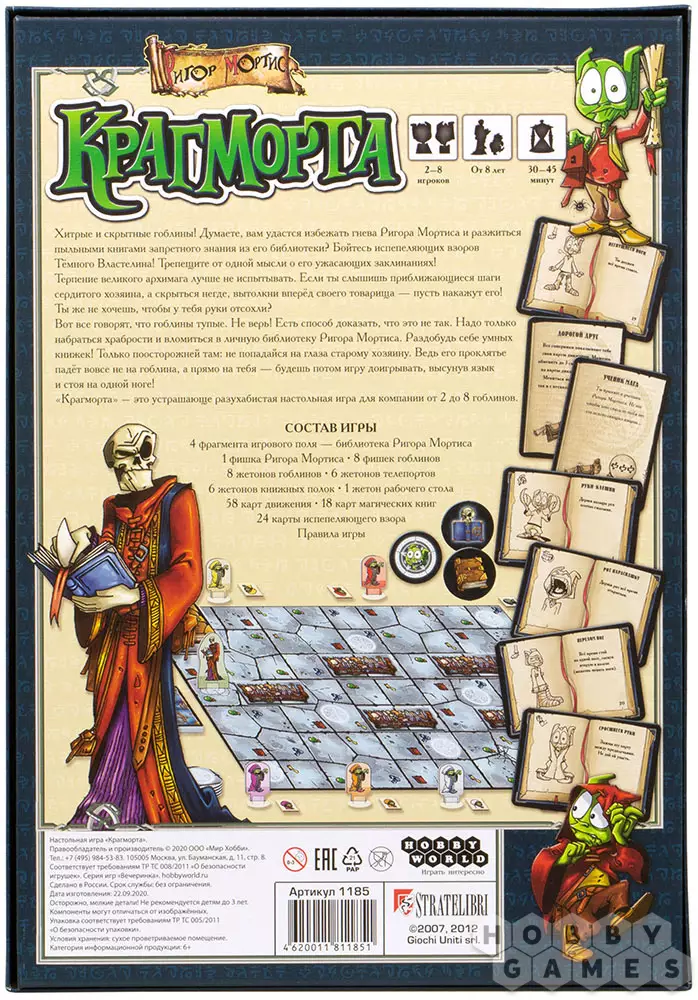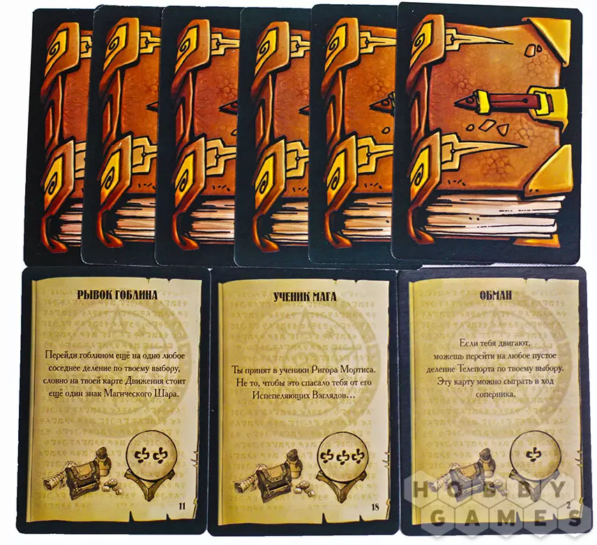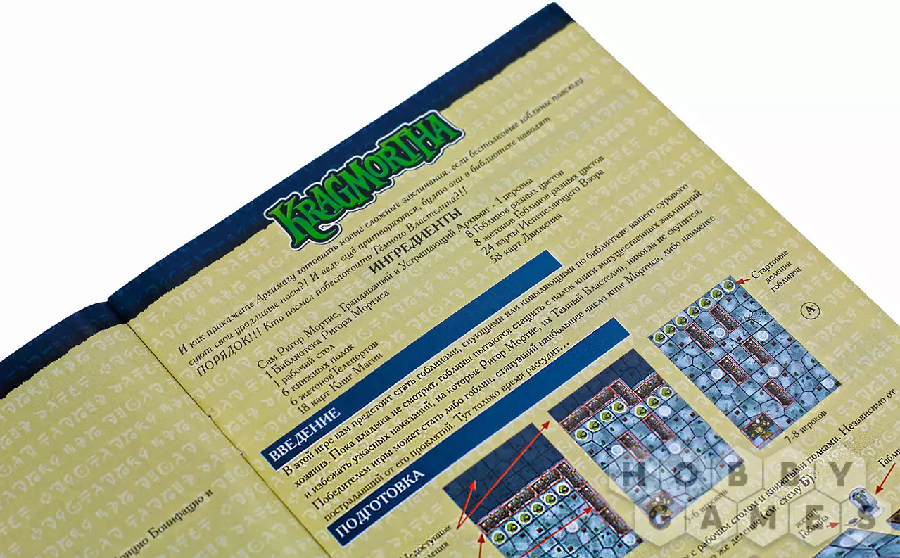 Но изюминка "Крагморт" не в этом, а в Испепеляющих Взорах. Их в избытке получат гоблины от своего властелина. Карточки содержат разные забавные наказания: до конца игры говорить исключительно сквозь зубы, или держать карточку с наказанием подбородком, или все время стоять на одной ноге – все наказания будут в этом же духе. Можно представить, какое веселье вас ожидает!