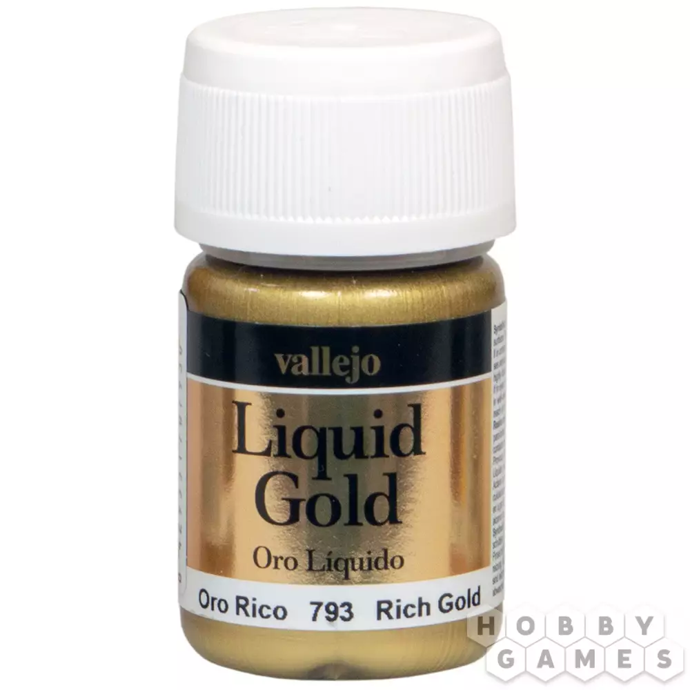 Компания Vallejo производит краски для хобби и моделизма с 90-х годов прошлого века, а ещё 30 лет до этого занималась производством красок для аниматоров мультфильмов. Благодаря такому обширному опыту в индустрии и тщательному контролю качества продукции краски компании высоко ценятся любителями моделизма во многих странах мира. Краски серии Vallejo Liquid Gold производятся на спиртовой основе с добавлением металлических пигментов, благодаря чему придают окрашенным моделям очень реалистичный металлический оттенок. Краски серии Liquid Gold можно смешивать в различных пропорциях, экспериментируя с получением уникальных оттенков благородных металлов.